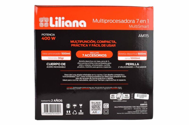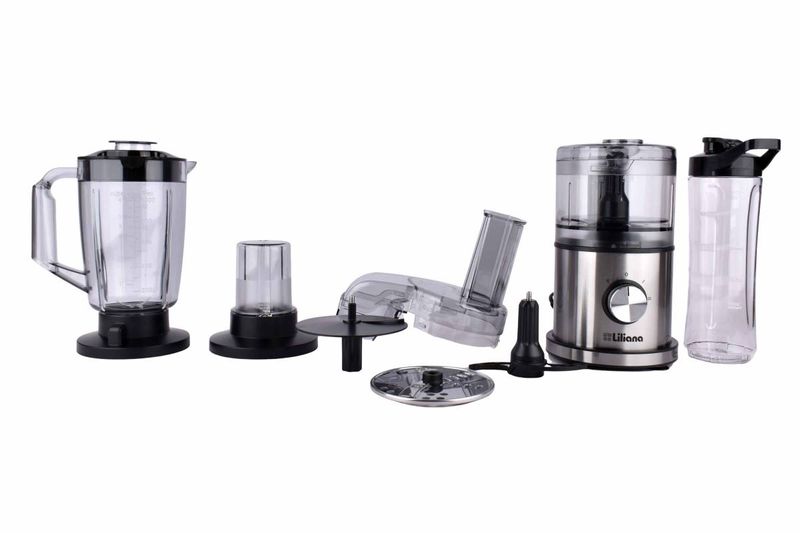 Multiprocesadora Liliana 7 en 1 de 400W con licuadora, molinillo y accesorios. Compacta y práctica para tu cocina. Cómpralo en Ferniplast.com
