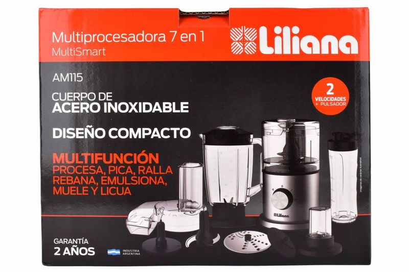 Multiprocesadora compacta y multifunción que simplifica la cocina diaria con 7 funciones en un solo equipo potente y práctico. Ideal para preparar licuados, salsas, picar vegetales, rallar quesos, moler granos y realizar múltiples recetas de forma rápida y práctica.
