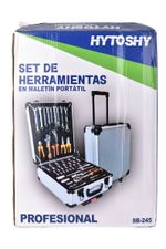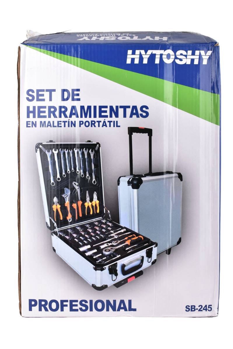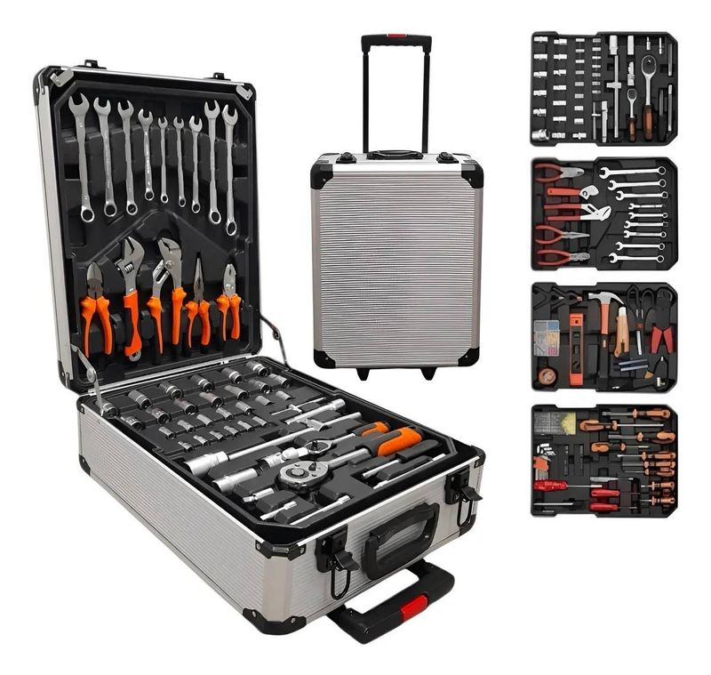 Set de herramientas profesional ideal para trabajos de mantenimiento, reparación y uso doméstico o técnico. Incluye 245 piezas organizadas en un resistente maletín portátil con manija y ruedas, que facilita el traslado y el orden. Una solución completa para electricistas, mecánicos, técnicos y aficionados al bricolaje.