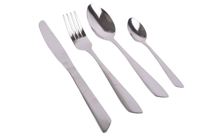 Set completo de cubiertos con acabado pulido, ideal para uso diario o para vestir la mesa en ocasiones especiales.