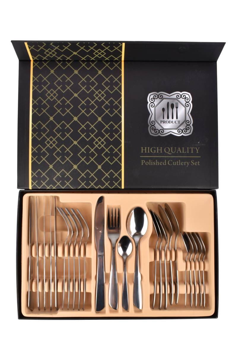Set de cubiertos pulidos de 24 piezas con estuche, ideal para uso diario o regalo. Orden y practicidad en tu mesa. Cómpralo en Ferniplast.com