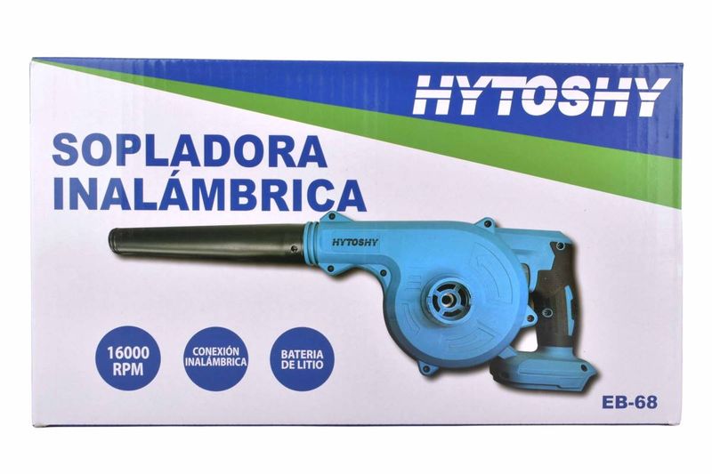 Sopladora de aire inalámbrica Hytoshy 21V con función soplar y succionar, ideal para limpieza sin cables. Práctica y portátil. Cómpralo en Ferniplast.com