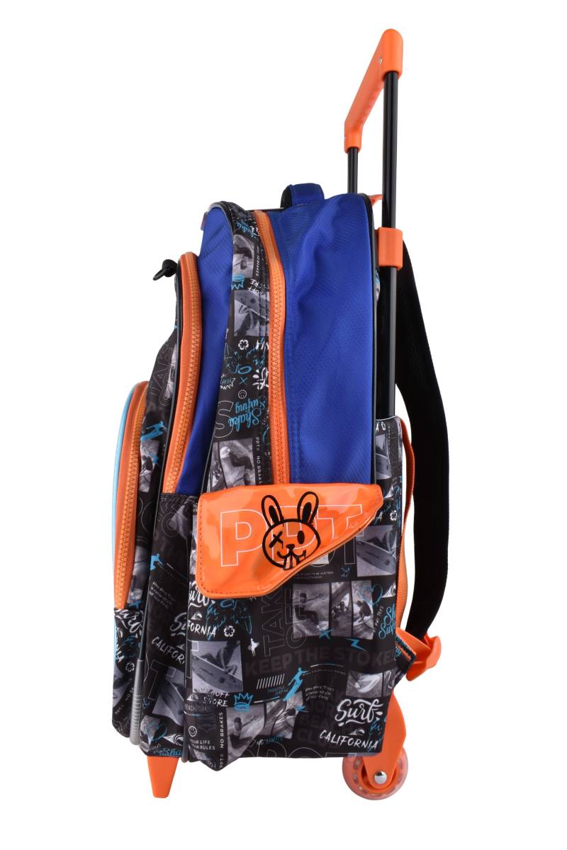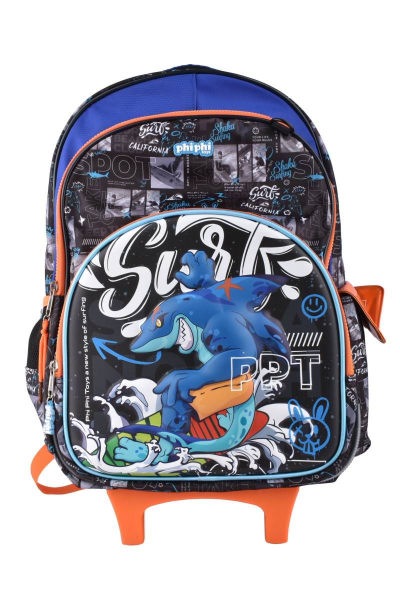 La mochila escolar con carro Surf de 18 pulgadas de Phi Phi Toys combina funcionalidad, resistencia y un diseño moderno de inspiración surf, ideal para chicos que buscan estilo y practicidad en el regreso a clases.