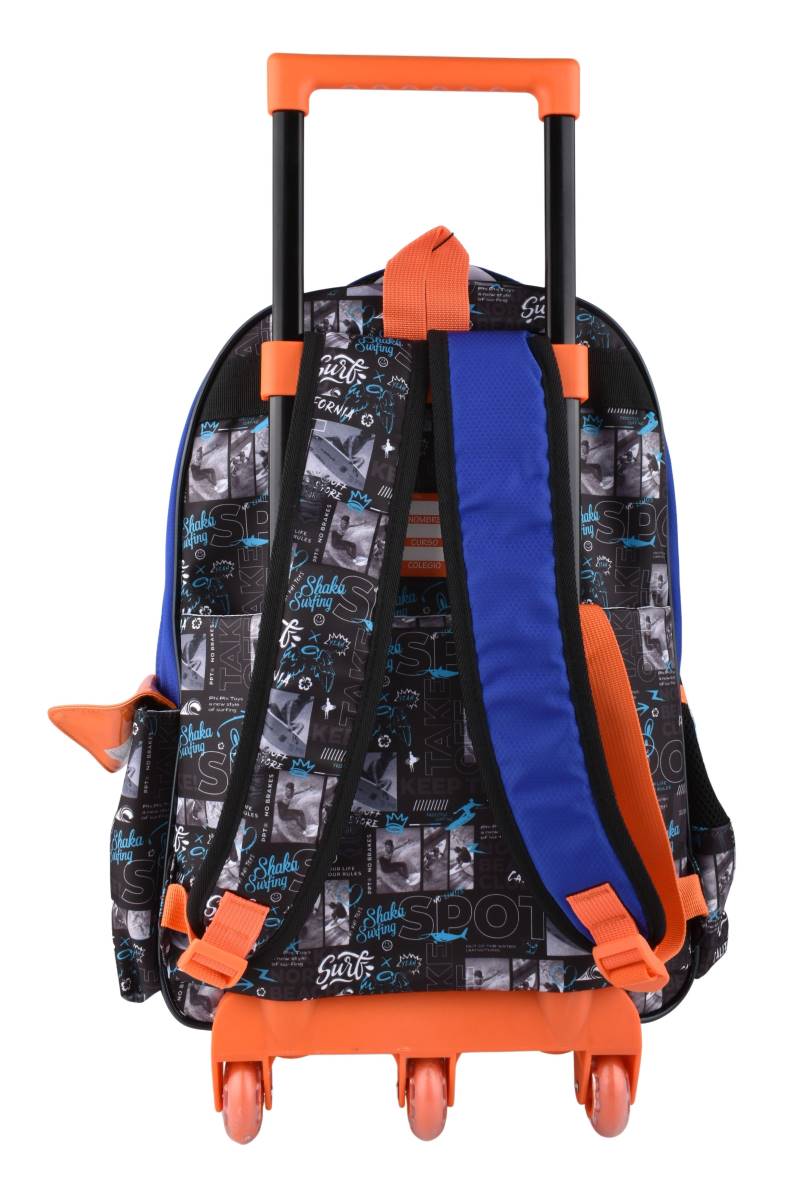 Mochila escolar con carro Surf 18”, resistente y amplia. Diseño moderno, ruedas para fácil transporte y gran capacidad. Ideal para el cole. Comprá en Ferniplast.com