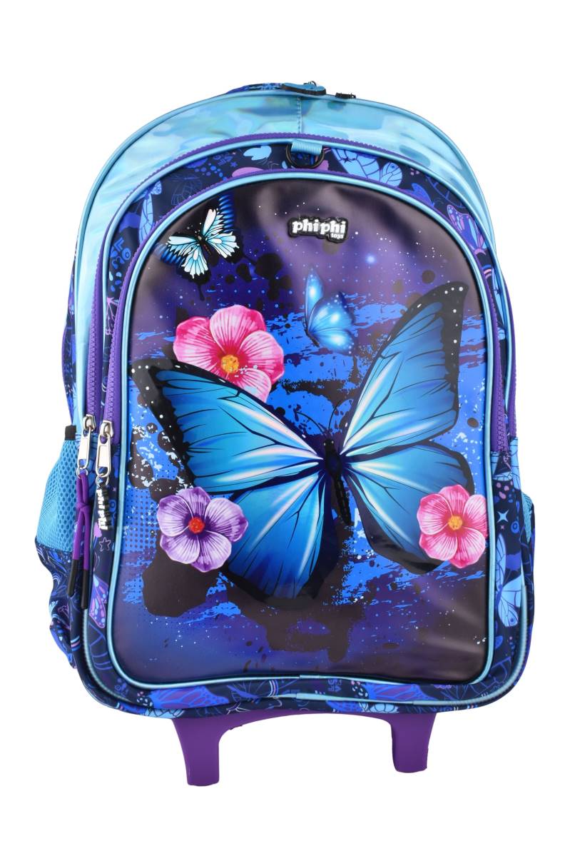 Mochila escolar con carro mariposa Phi Phi, cómoda y funcional para el uso diario. Diseño atractivo y práctico. Cómpralo en Ferniplast.com.