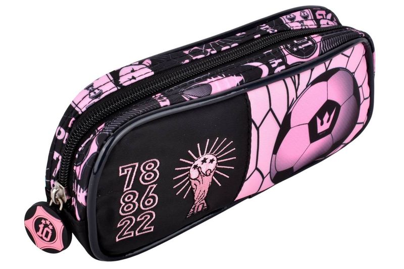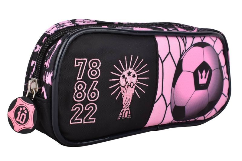 Cartuchera escolar de diseño fútbol IM, ideal para organizar útiles diarios con un formato compacto y resistente.
