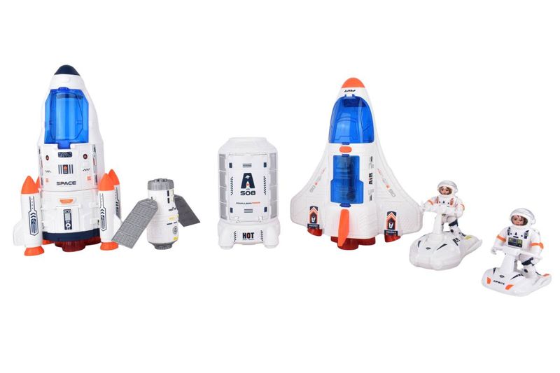 Set de juego espacial con naves, cápsulas y astronautas para recrear misiones espaciales y estimular la imaginación infantil. Pensado para juegos de rol y aventuras espaciales, permite recrear misiones, exploraciones y escenas del espacio fomentando la creatividad.
