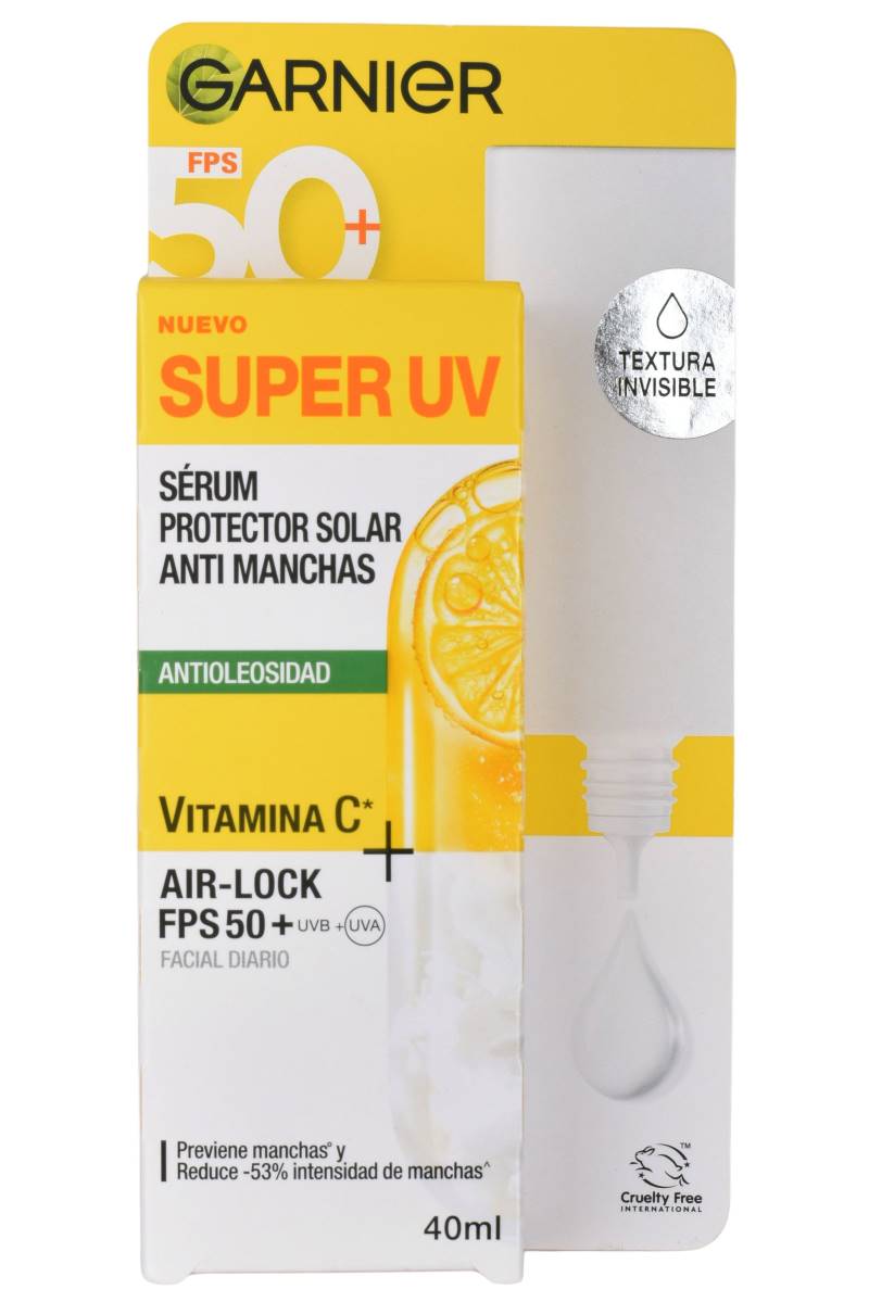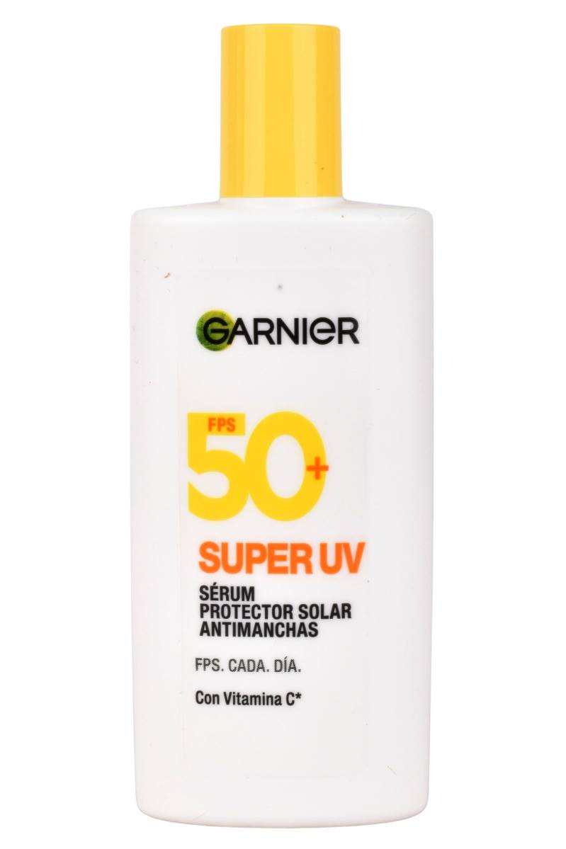 Protector solar Garnier FPS 50+ con vitamina C, textura sérum y acción antimanchas. Ideal para uso diario. Cómpralo en Ferniplast.com