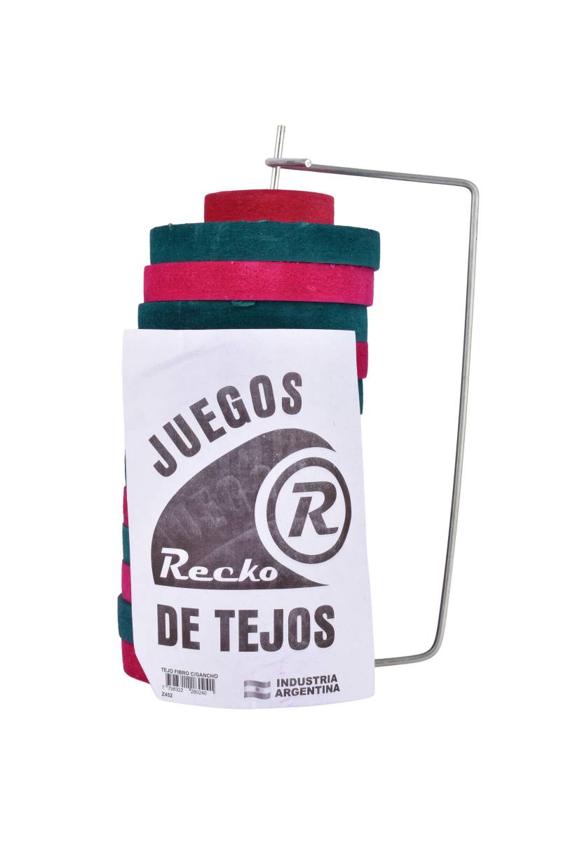 Tejo fibro diseñado para el juego tradicional de tejos, ideal para actividades recreativas y encuentros sociales. Incluye ganchos metálicos que permiten colgar y organizar los tejos de forma práctica. Fabricado en material resistente, es apto para uso frecuente y aporta diversión tanto en interiores como en exteriores.