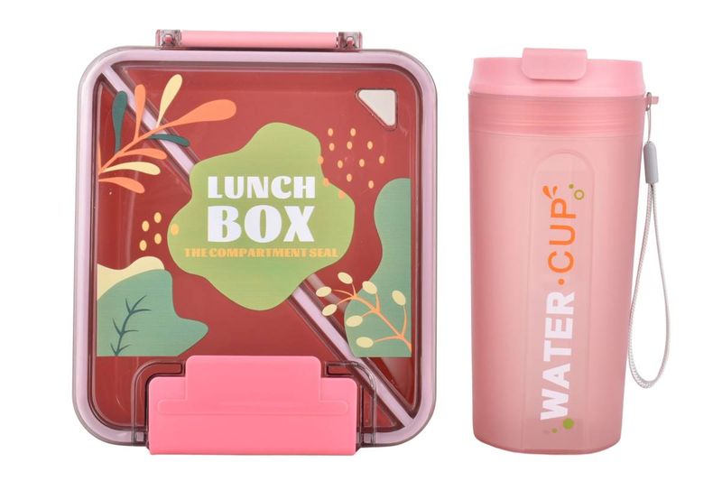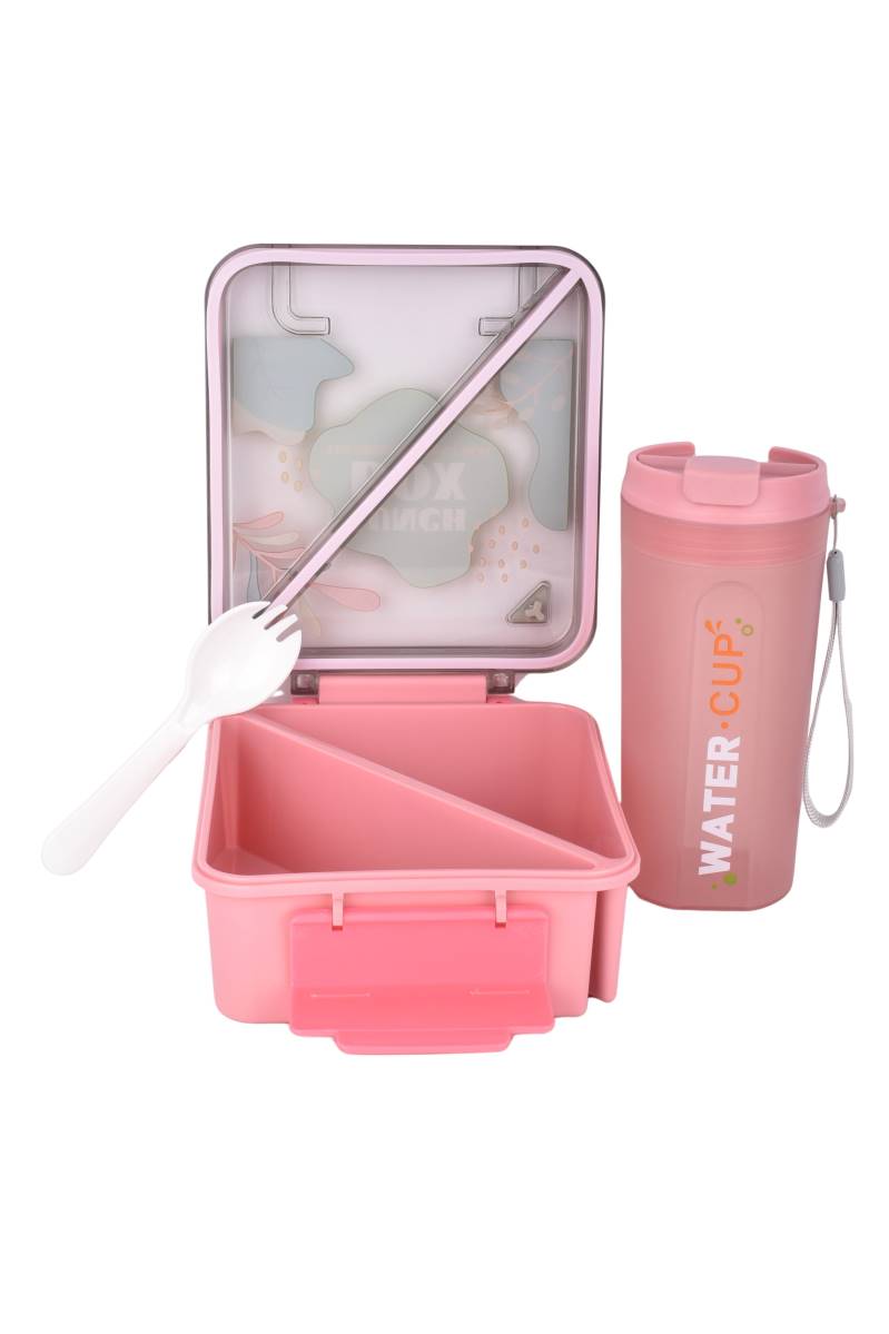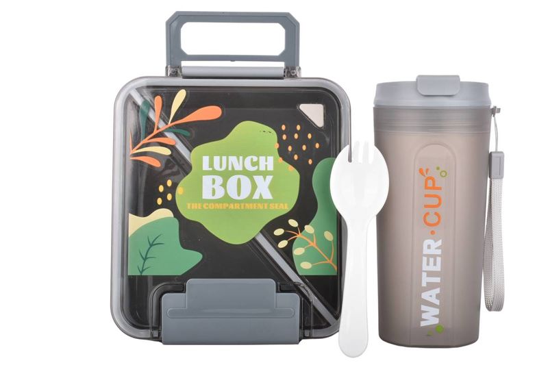 Set de lunchera práctica y reutilizable con compartimentos, cubierto y vaso con tapa, ideal para llevar comidas y bebidas de forma organizada. Ideal para llevar almuerzos, snacks o meriendas al trabajo, escuela, facultad o actividades al aire libre, manteniendo los alimentos separados.