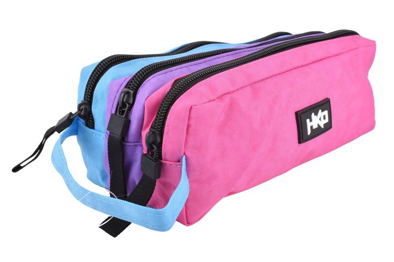 Cartuchera Henko tricolor con 3 cierres y diseño práctico para organizar útiles escolares. Ideal para el uso diario. Cómpralo en Ferniplast.com