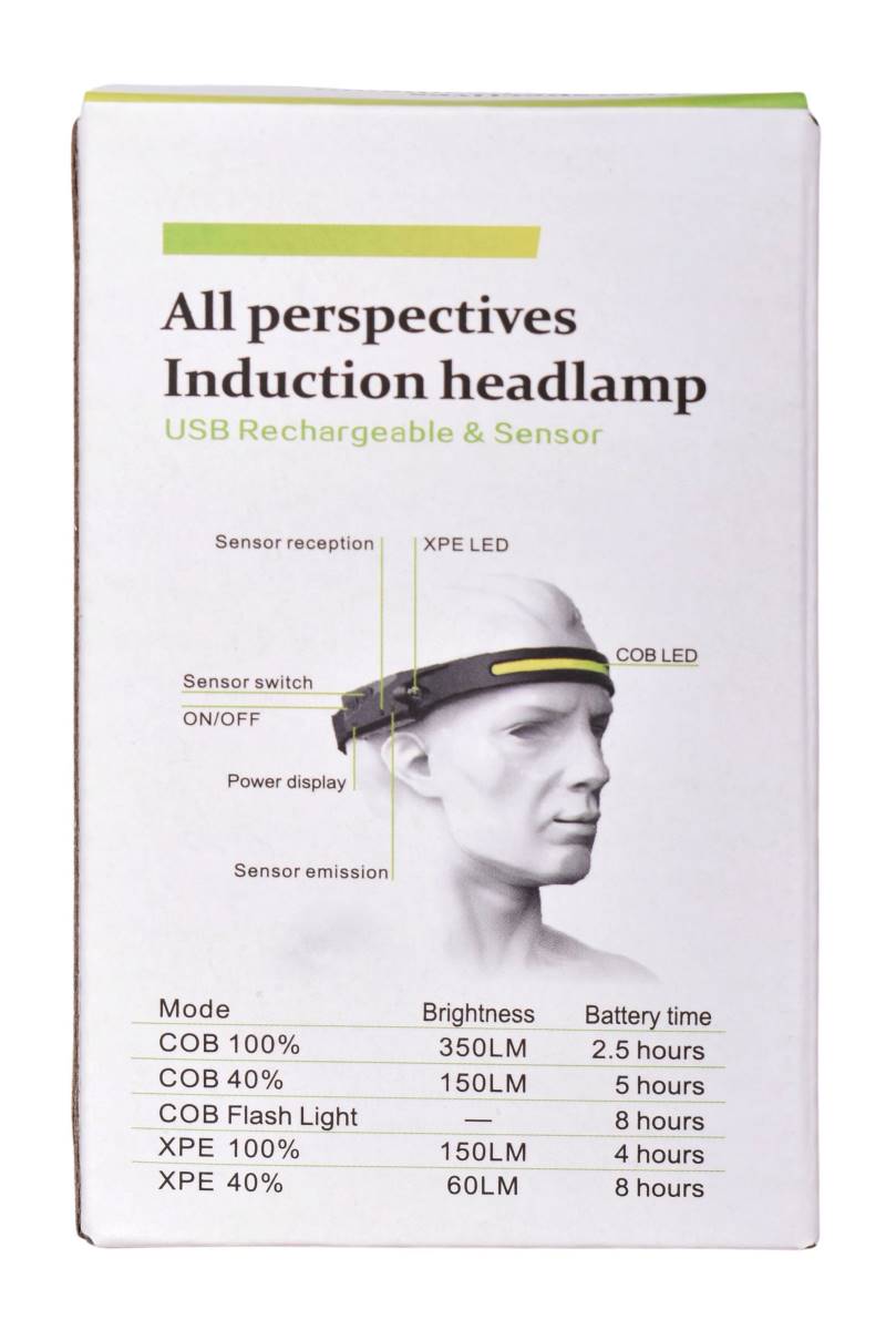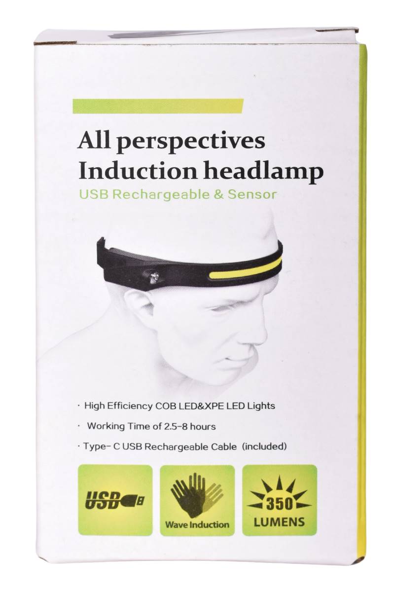 Linterna LED tipo vincha con sensor y USB recargable. Potente, práctica y manos libres para trabajo o camping. Cómprala hoy en Ferniplast.com.