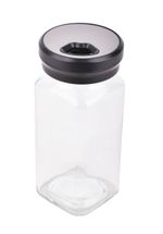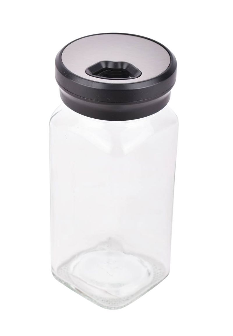 Salero de vidrio con tapa metálica y diseño compacto, ideal para mesa o cocina. Práctico y funcional. Cómpralo en Ferniplast.com