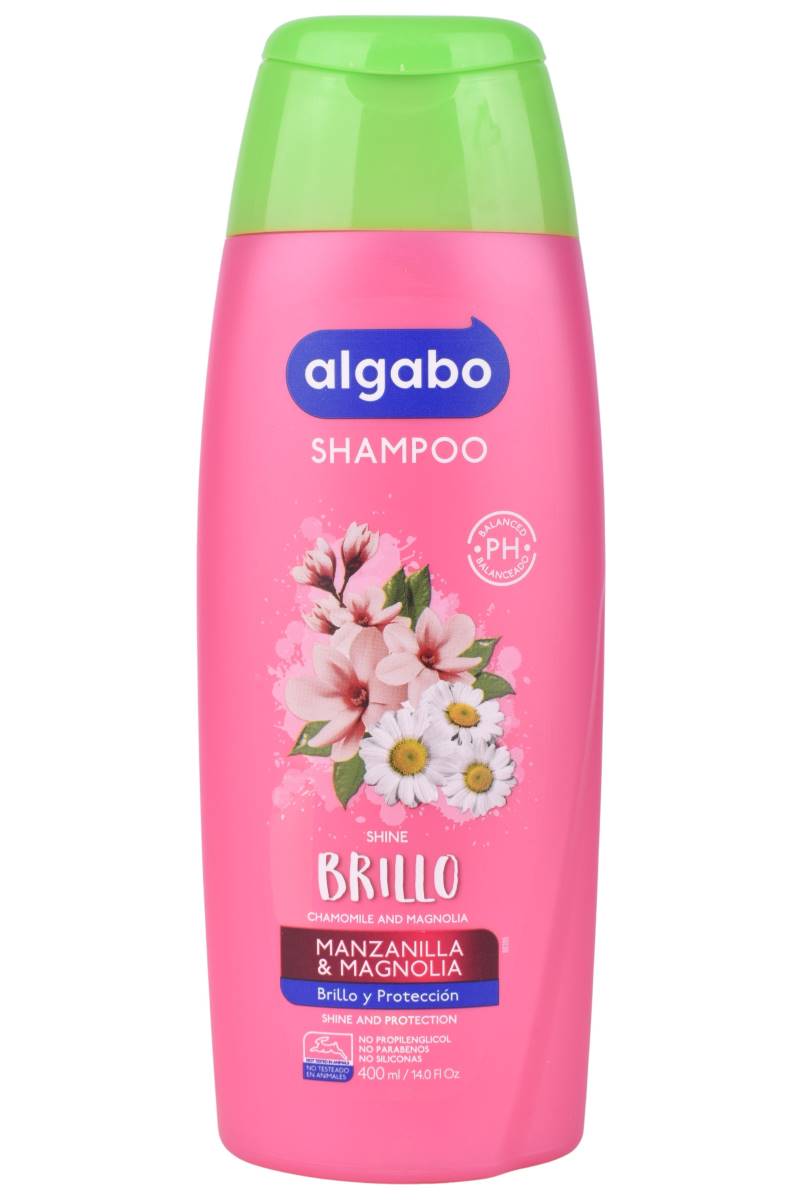 Shampoo Algabo formulado para brindar brillo y protección al cabello, con extractos de manzanilla y magnolia y pH balanceado para el uso diario. Se utiliza para la limpieza diaria del cabello, ayudando a mantenerlo limpio, con brillo visible y sensación de suavidad.