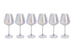 Set de 6 copones de vidrio con efecto tornasol, ideales para realzar la presentación de vinos y cócteles con un brillo único. Perfectos para servir vino, tragos o bebidas especiales en reuniones, celebraciones o uso diario con un toque moderno.