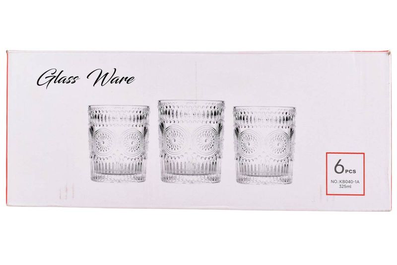 Vasos de vidrio 325 ml con diseño en relieve x6. Elegantes, resistentes y perfectos para tus bebidas diarias. Cómpralos hoy en Ferniplast.com.