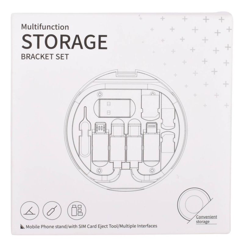 Kit compacto todo en uno para transportar cables, adaptadores y herramientas SIM de forma ordenada y segura. Ideal para viajes y uso diario. Permite cargar y transferir datos entre distintos dispositivos usando un solo kit compacto, evitando llevar múltiples cables sueltos.