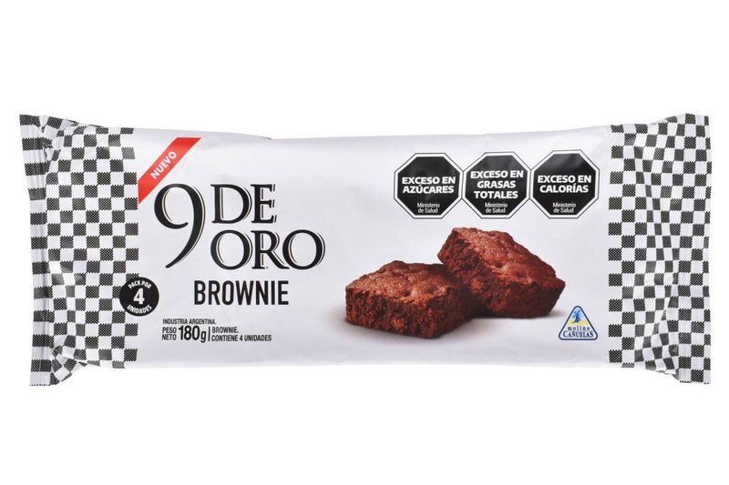 Bizcochuelo 9 de Oro Brownie pack x4 unidades. Peso neto 180 g. Ideal para desayunos y meriendas. Compralo en Ferniplast.com