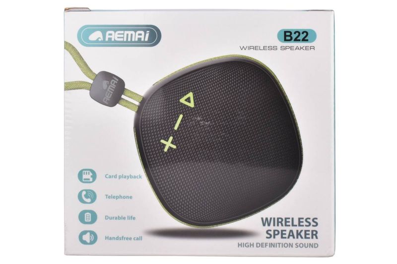 Parlante inalámbrico portátil AEMAI B22 con Bluetooth 5.3, función manos libres y diseño compacto. Llevá tu música a todos lados. Cómpralo en Ferniplast.com