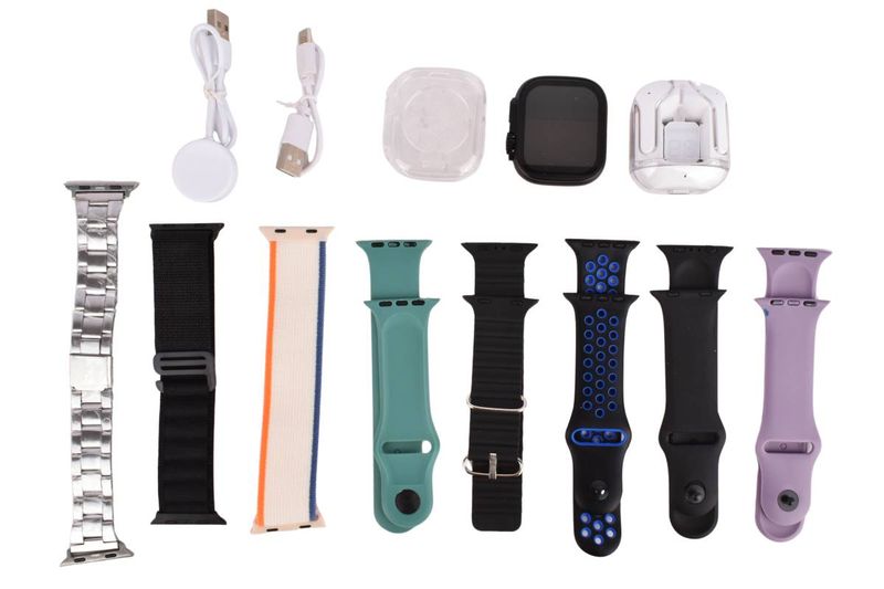 Un kit tecnológico completo 8-en-1 que combina un smartwatch de 49mm, auriculares inalámbricos y una variedad de mallas para adaptar tu estilo a cualquier ocasión. Ideal para realizar un seguimiento de la actividad física y recibir notificaciones diarias, mientras disfrutas de tu música favorita de forma inalámbrica con los auriculares incluidos.