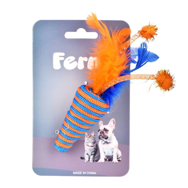 ¡Diversión y salud para tu mascota! Juguete de zanahoria con plumas y cuerda resistente para perros pequeños y gatos. Cómpralo en Ferniplast.com.