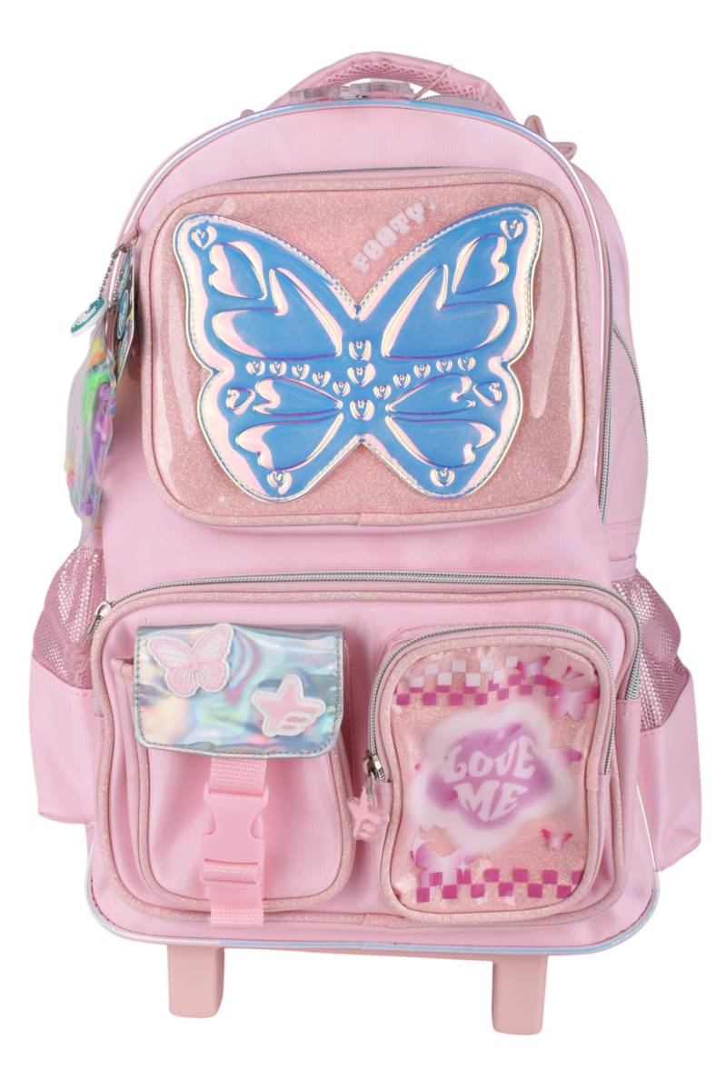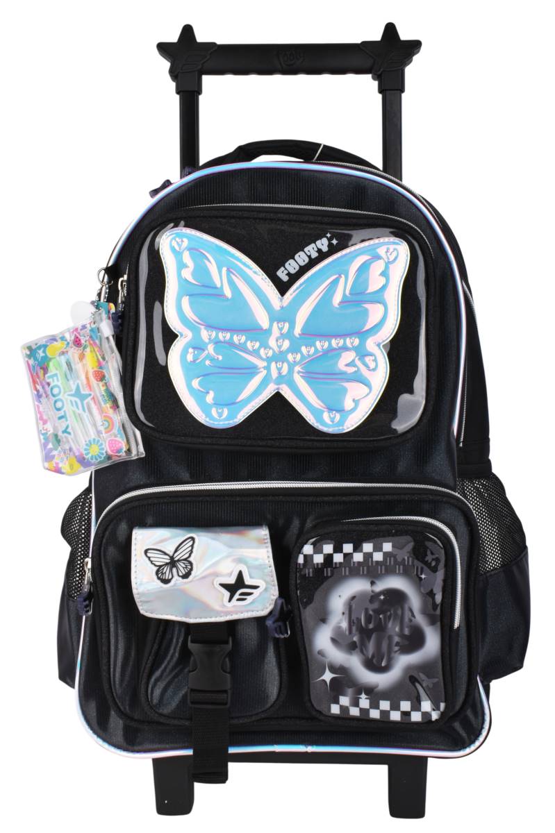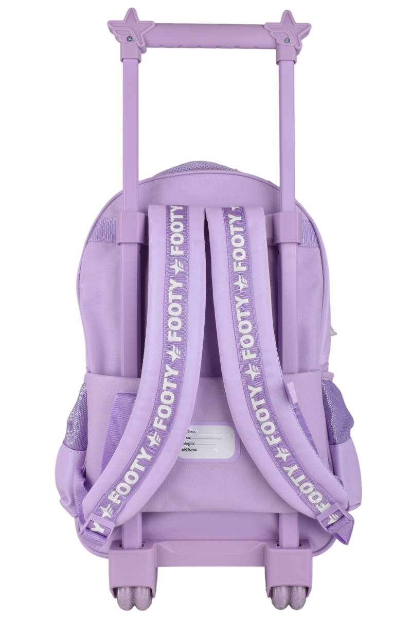 Mochila con carro Footy Glow Fly 18" con ruedas y múltiples bolsillos. Ideal para la escuela. Comprala online en Ferniplast.com