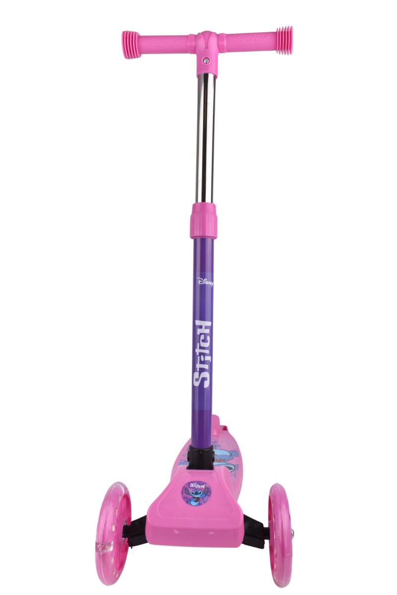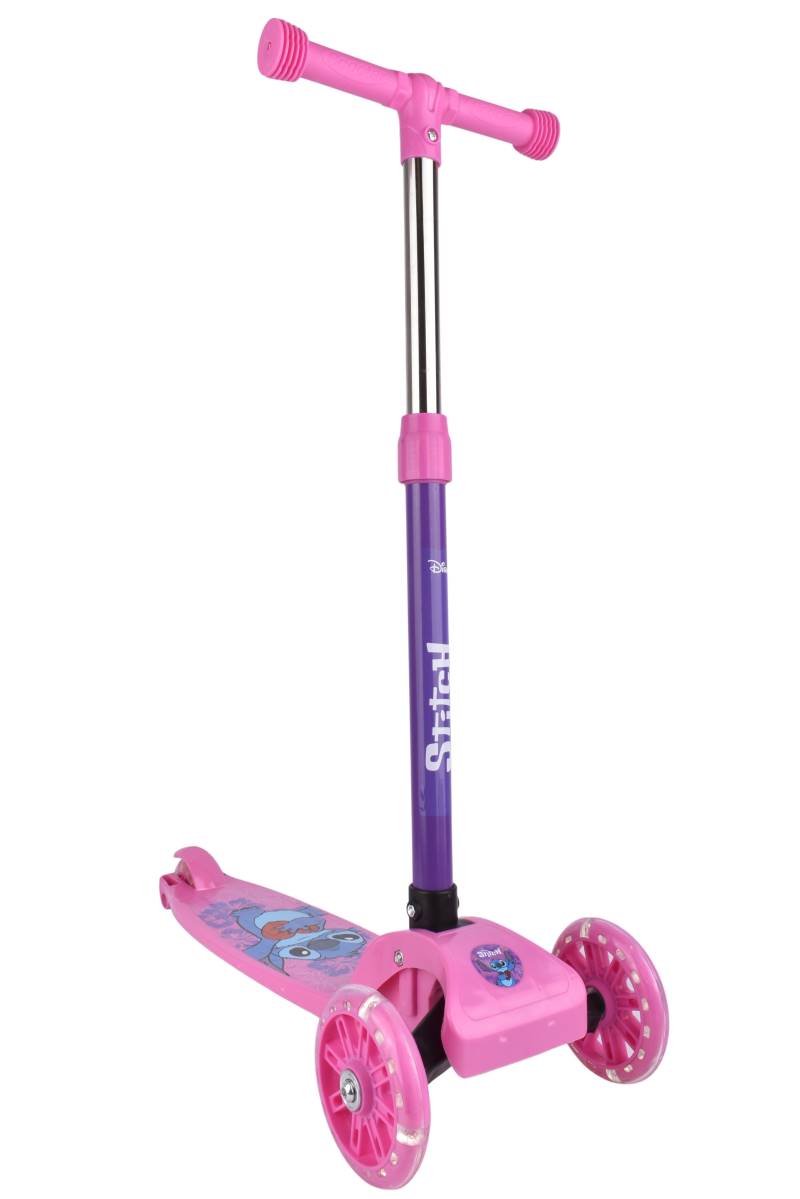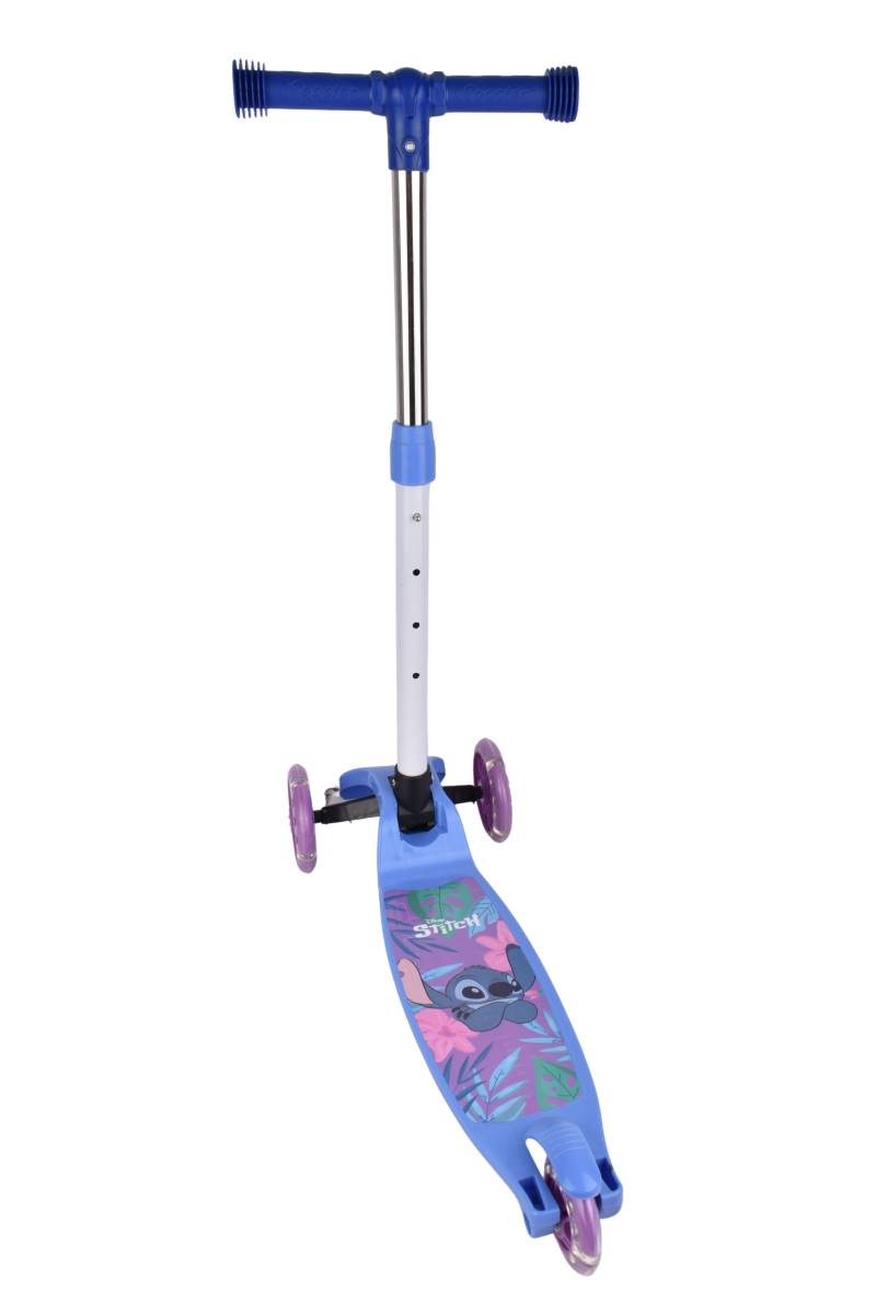 Monopatín infantil de 3 ruedas con diseño de Stitch, ideal para primeros paseos. Seguro, estable y con ruedas luminosas. Perfecto para que los más chicos desarrollen equilibrio y coordinación mientras disfrutan de paseos seguros y divertidos.