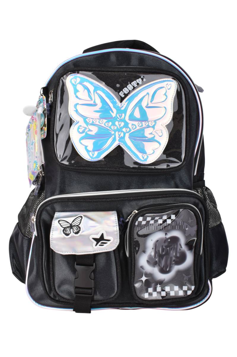 Mochila Footy Glow Fly 18" con múltiples bolsillos y tiras acolchadas. Ideal para el cole. Elegí tu color y Cómpralo en Ferniplast.com