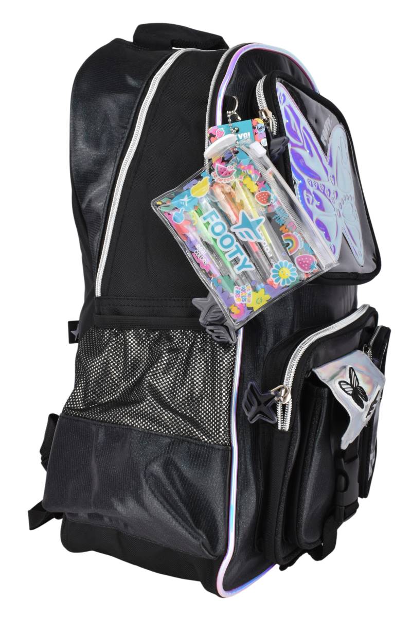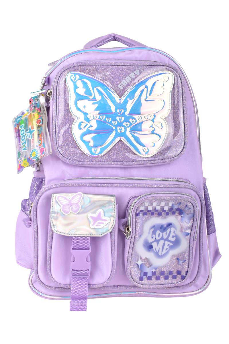 La mochila Footy Glow Fly 18" combina diseño moderno con gran capacidad para el uso escolar diario. Cuenta con múltiples compartimentos y bolsillos que permiten organizar útiles, cuadernos y accesorios de forma práctica. Sus tiras acolchadas brindan mayor comodidad en la espalda, ideal para acompañar toda la jornada con estilo y funcionalidad.