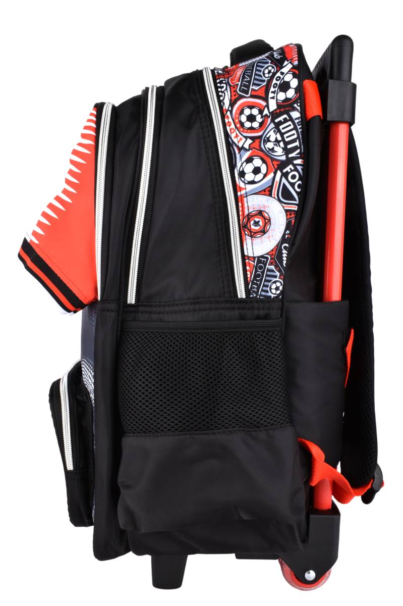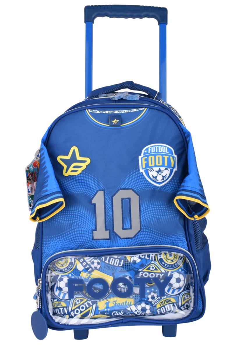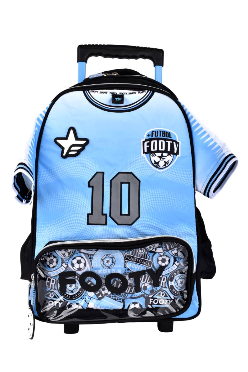 Mochila con carro Footy 18” Dream Team, ideal para el cole con diseño estilo camiseta de fútbol. Su estructura con ruedas facilita el traslado diario y ayuda a reducir el peso en la espalda. Amplio compartimento principal y bolsillo frontal para organizar útiles, carpetas y accesorios de forma práctica.