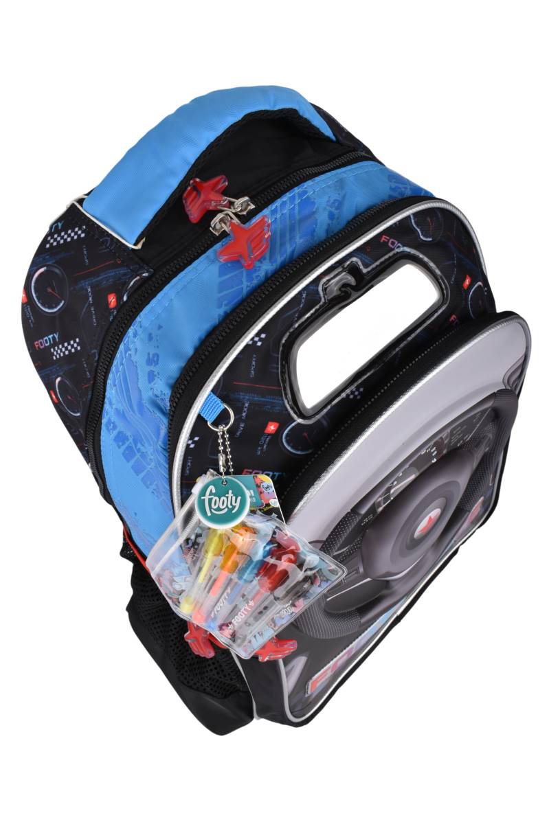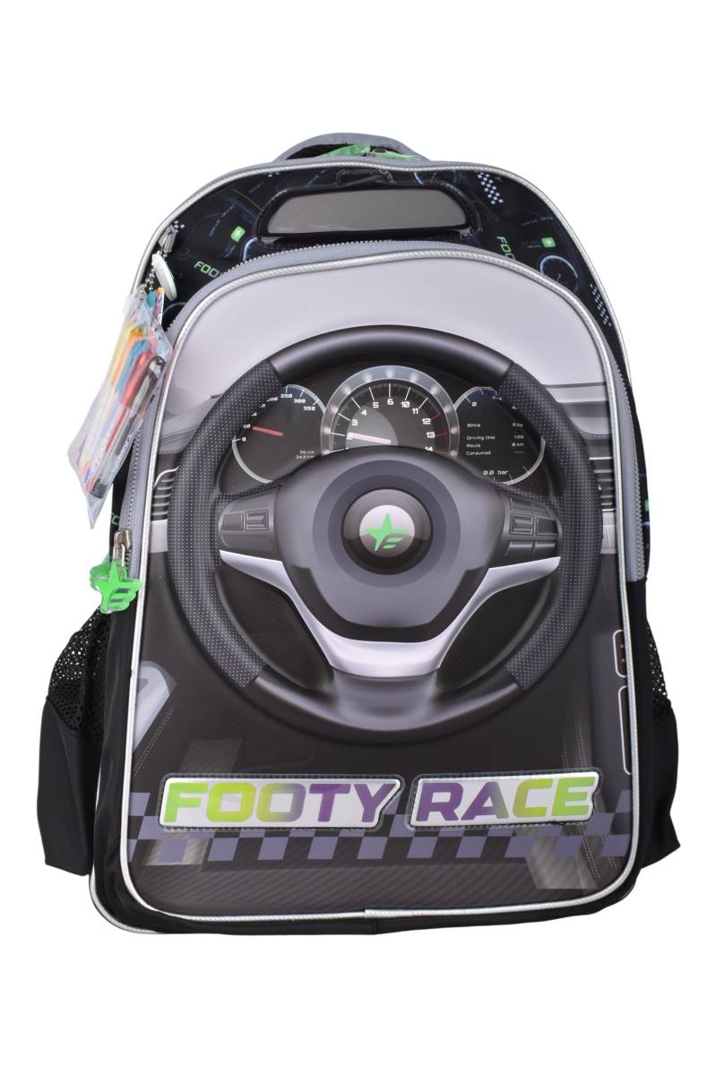 Mochila Footy 18" F1 Race con diseño 3D y múltiples compartimentos. Ideal para la escuela. Comprala online en Ferniplast.com.
