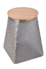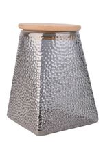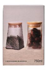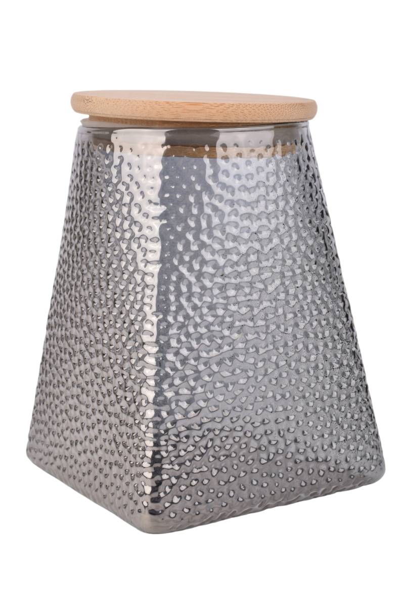 Frasco de vidrio texturado con capacidad de 750 ml, ideal para almacenar alimentos secos como legumbres, cereales, azúcar o frutos secos. Su diseño con relieve aporta un detalle decorativo moderno, mientras que la tapa de madera brinda un cierre firme para mantener el contenido protegido y organizado.