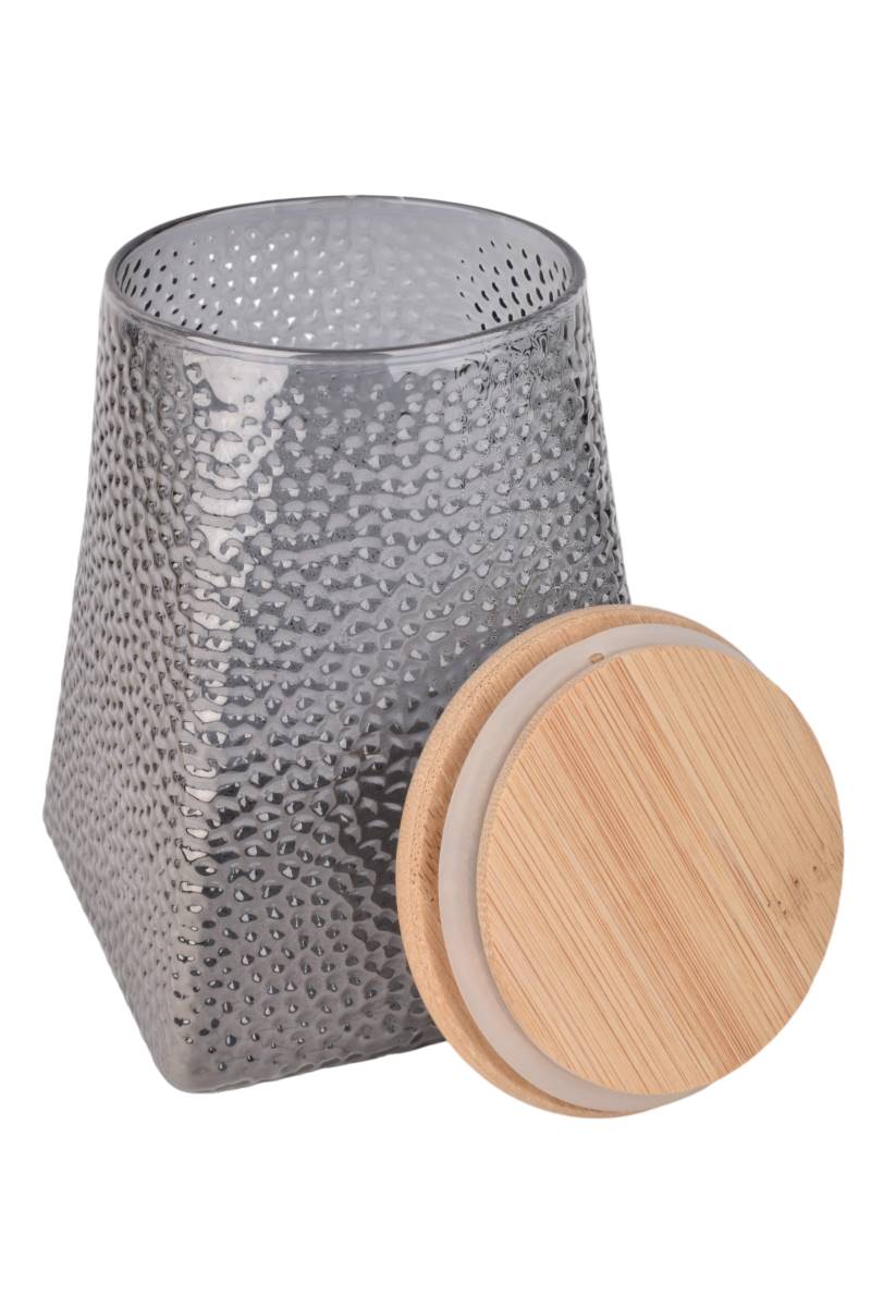 Frasco de vidrio texturado 750ml con tapa de madera ideal para cereales y legumbres. Decorativo y práctico. Cómpralo en Ferniplast.com