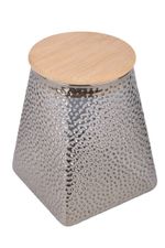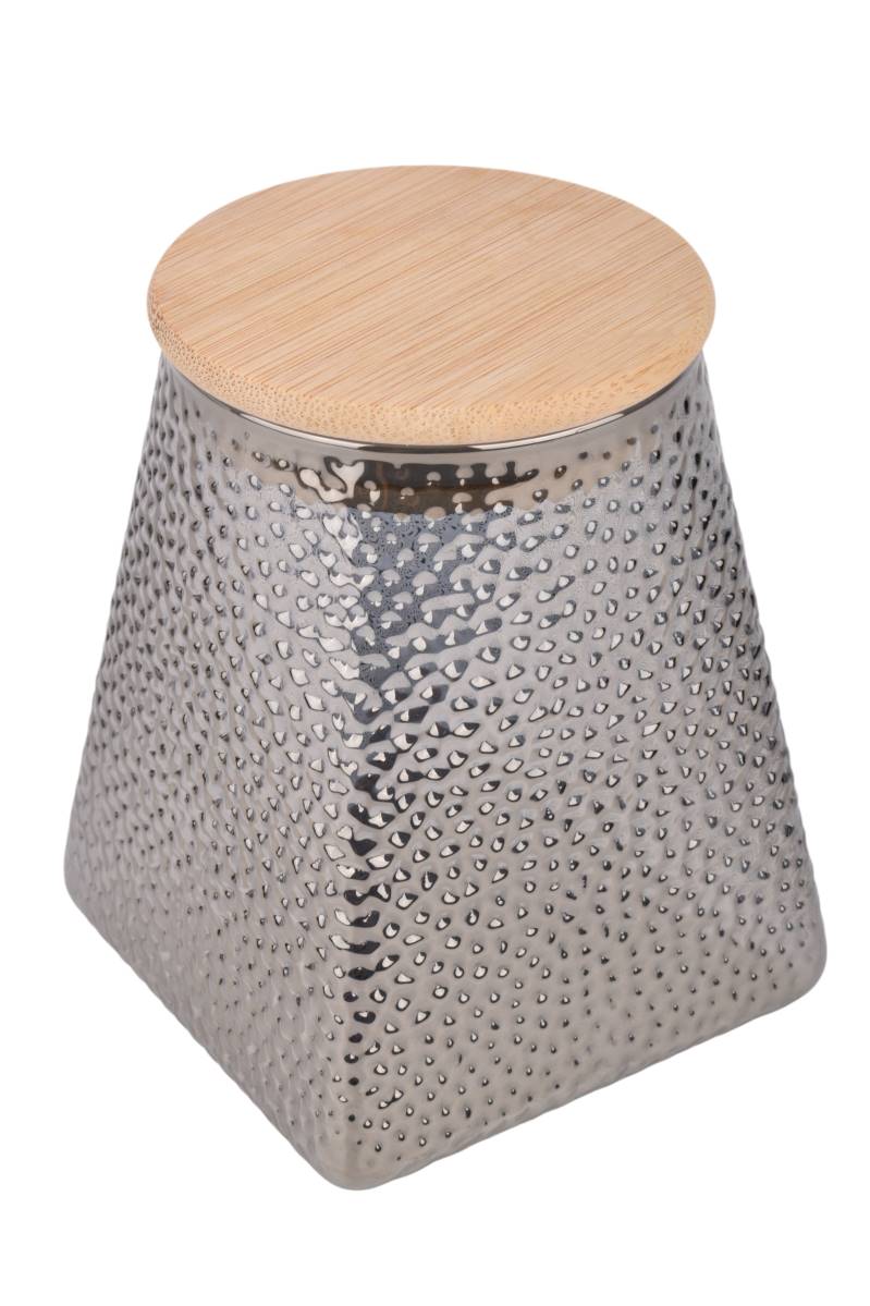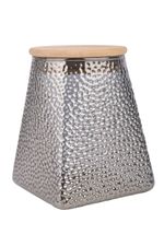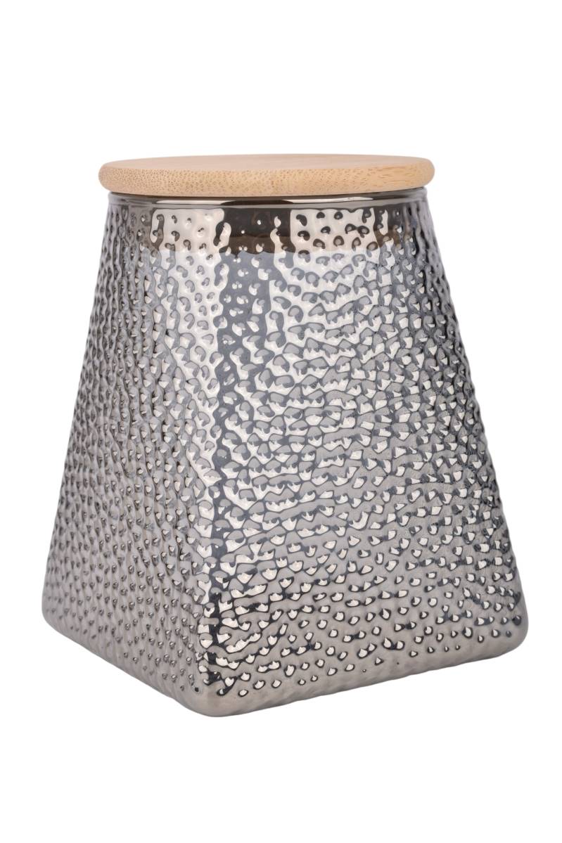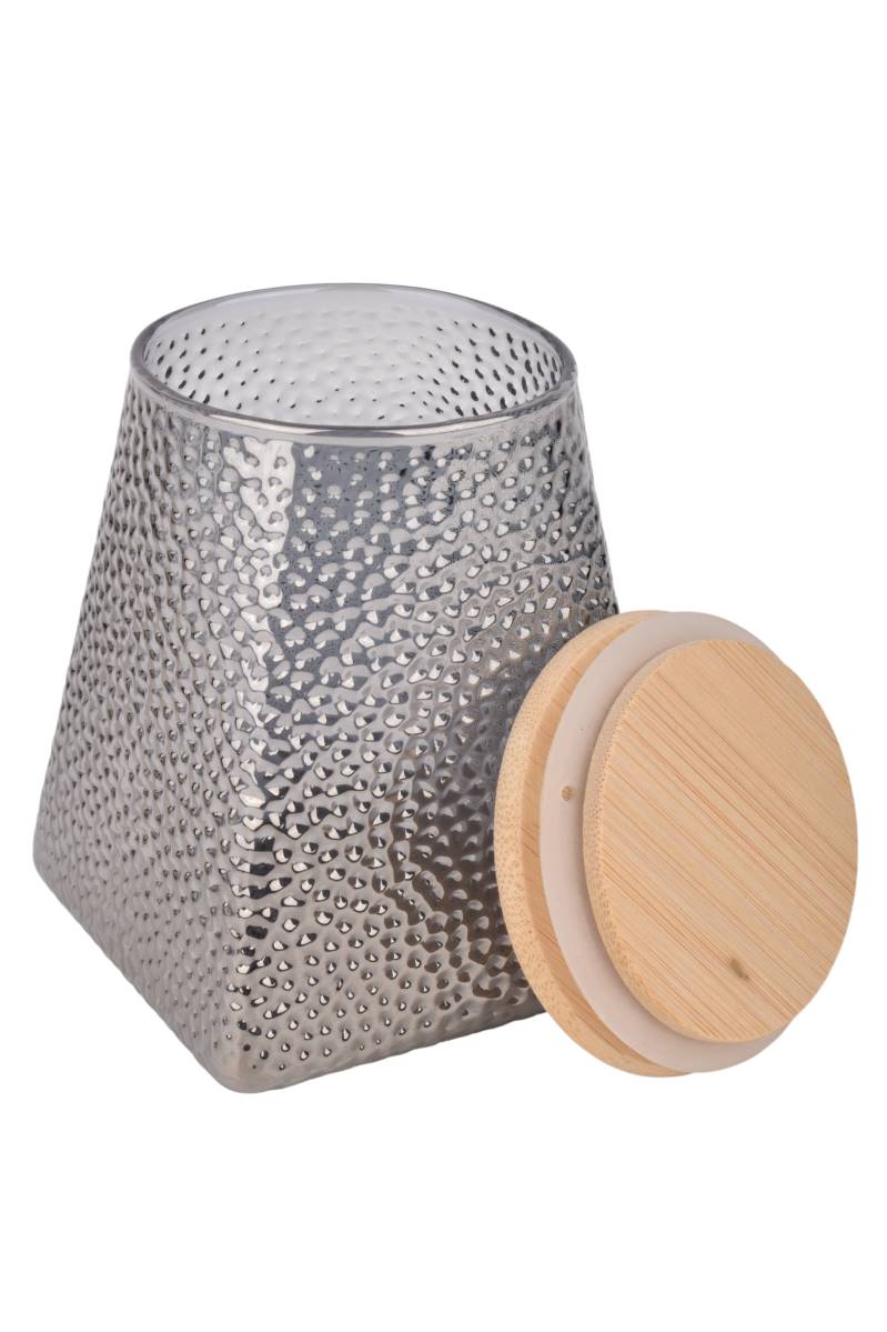 Frasco de vidrio texturado con capacidad de 550 ml, ideal para almacenar alimentos secos como café, azúcar, especias o frutos secos. Su diseño con relieve aporta un detalle decorativo distintivo, mientras que la tapa de madera ofrece un cierre firme para mantener el contenido protegido y organizado en la cocina.