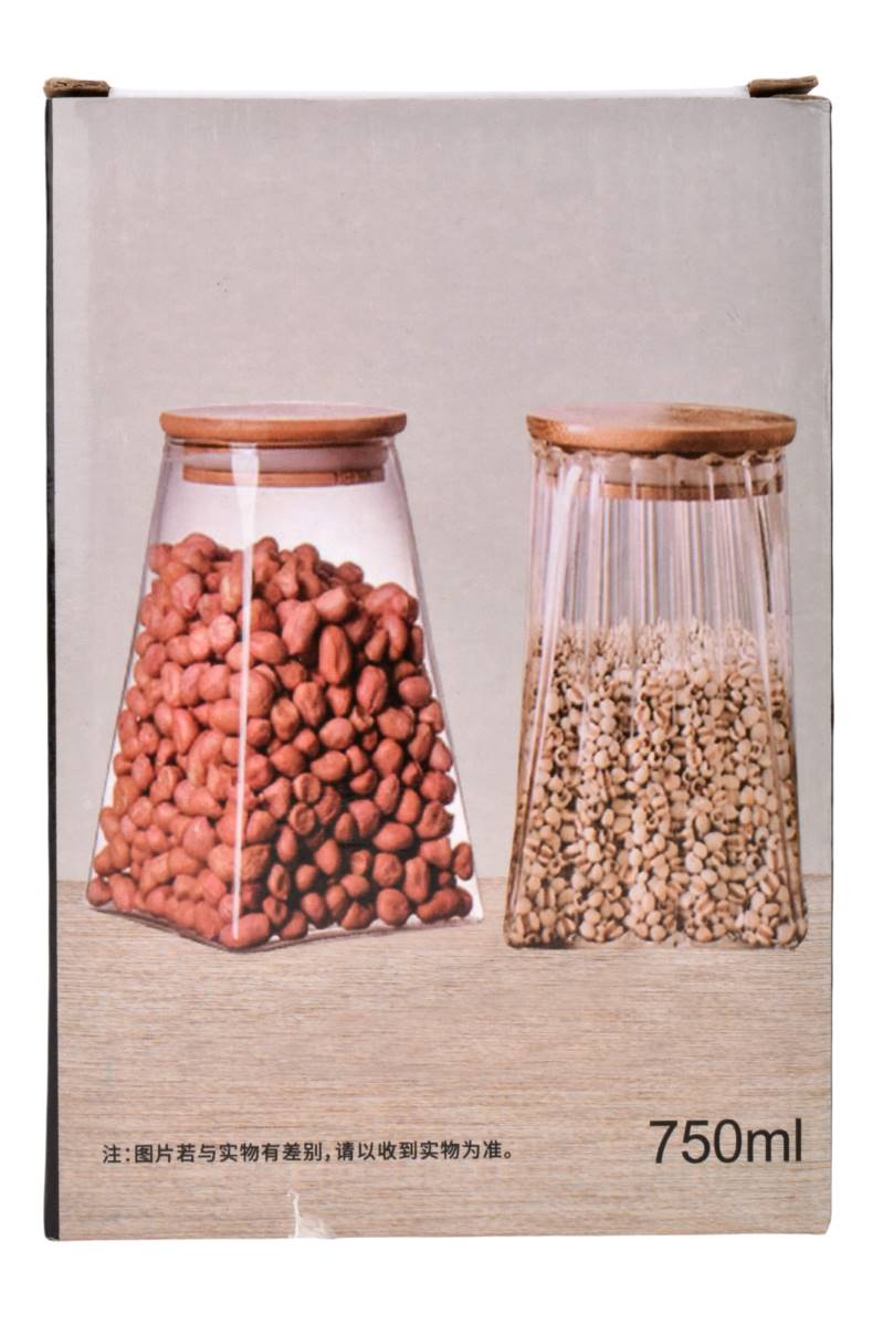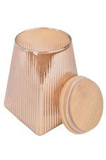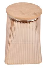 Frasco de vidrio rayado con capacidad de 750 ml, ideal para almacenar alimentos secos como legumbres, frutos secos, azúcar o cereales. Su tapa de madera aporta un cierre firme y un estilo cálido que combina con distintos tipos de cocina, permitiendo organizar y exhibir el contenido de forma práctica.