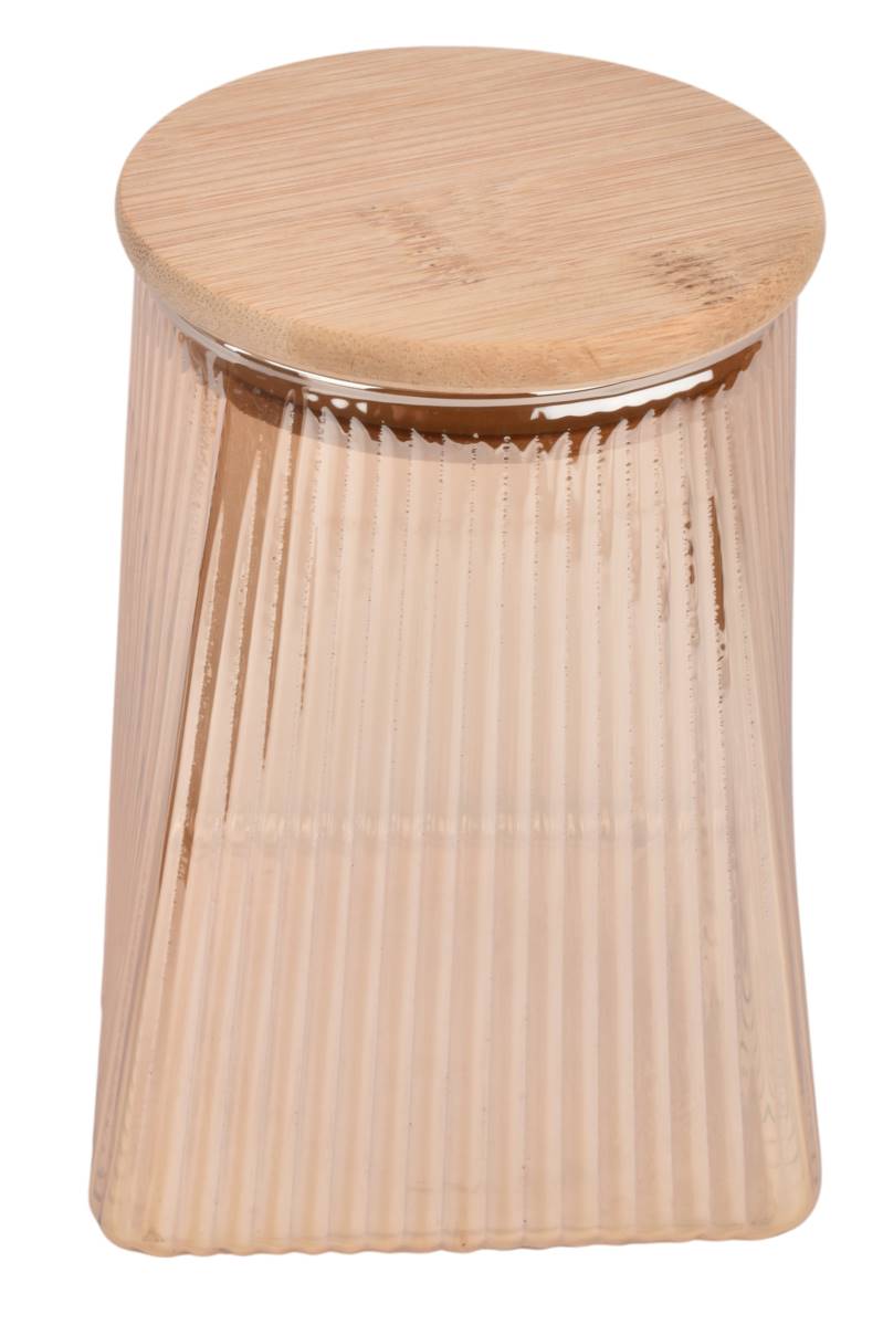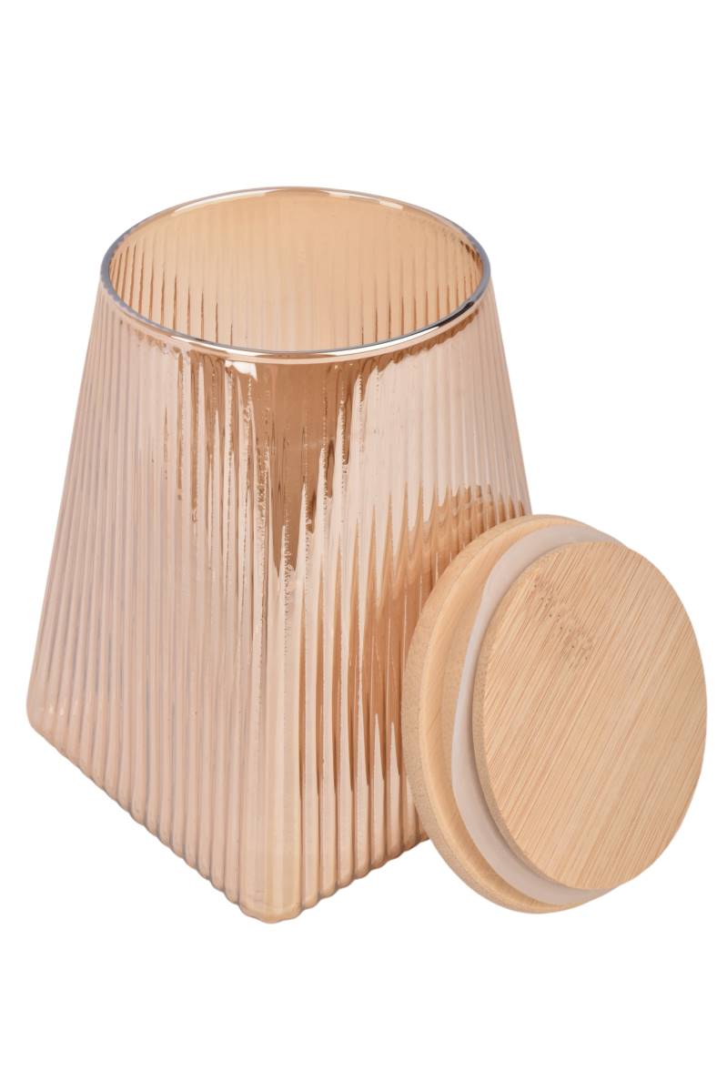 Frasco de vidrio rayado 750ml con tapa de madera ideal para legumbres, azúcar y cereales. Funcional y decorativo. Cómpralo en Ferniplast.com