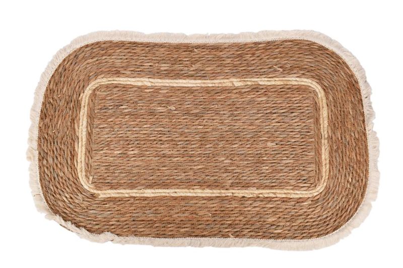 Alfombra decorativa de fibras naturales 50x80 cm. Diseño rústico ideal para living, dormitorio o entrada. Disponible en Ferniplast.com.