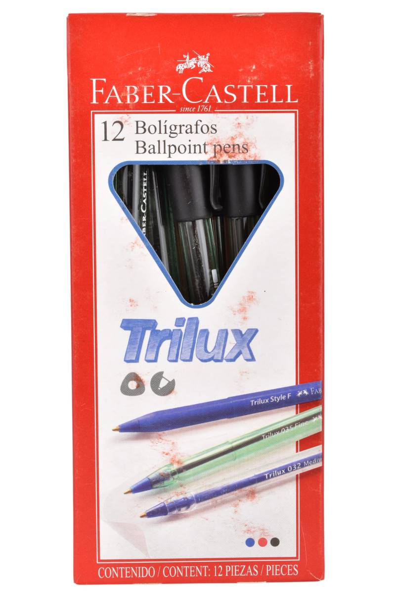Bolígrafos Faber-Castell Trilux 035 negro x12. Trazo fino y escritura uniforme para escuela u oficina. Cómpralo en Ferniplast.com