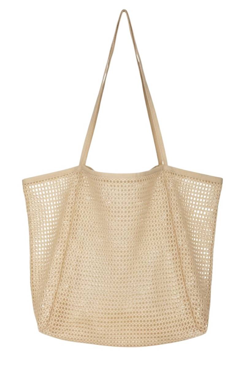 Bolso playero liviano y amplio, ideal para llevar todo lo necesario a la playa o pileta manteniendo el contenido ventilado.