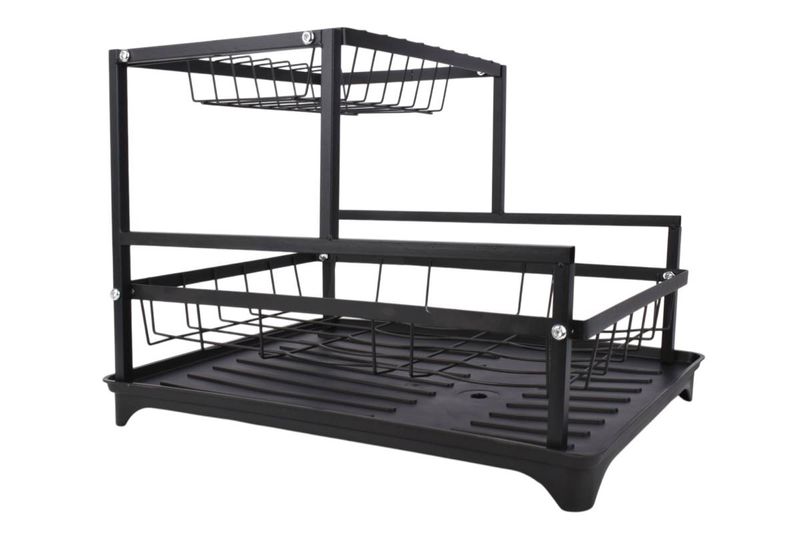 Secaplatos de bacha 39,5x28,5x26 cm negro con 2 niveles y base recolectora. Organiza tu vajilla fácilmente. Cómpralo en Ferniplast.com