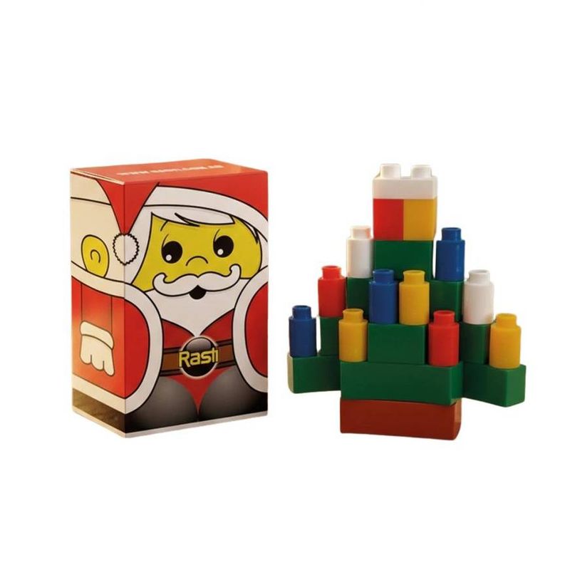 Set de bloques Rasti para armar un arbolito navideño, ideal para actividades creativas y temáticas durante las fiestas. Permite construir una figura decorativa utilizando piezas encastrables, fomentando la imaginación, la motricidad fina y el juego constructivo. Una opción lúdica para combinar juego y espíritu navideño.