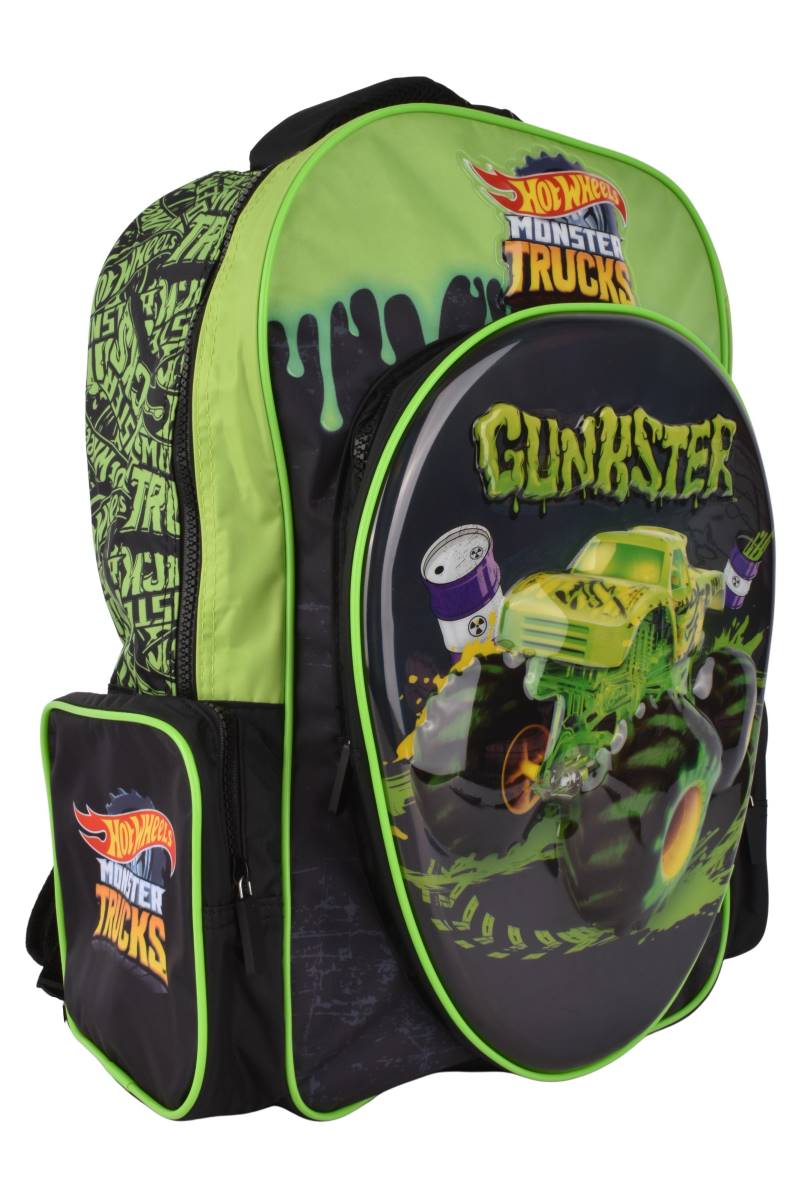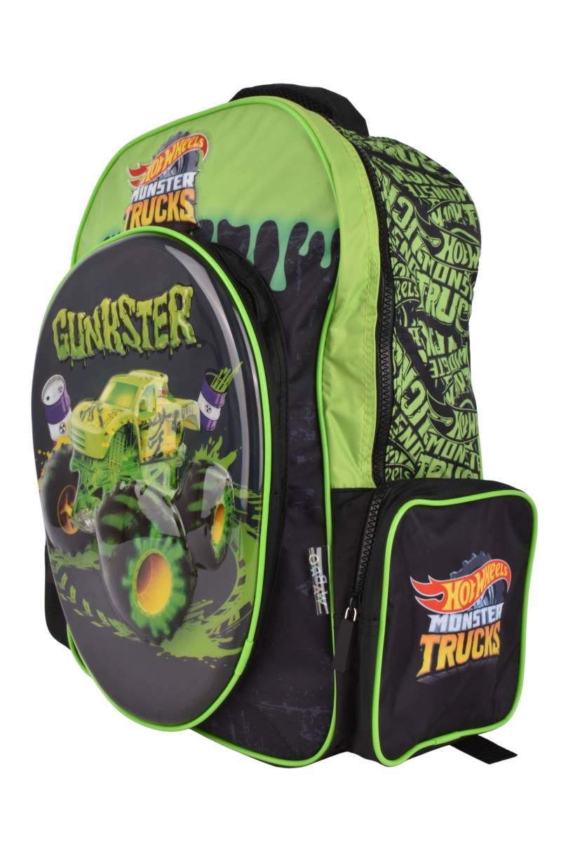 Mochila Wabro 17" Hot Wheels Monster Trucks Green, ideal para la escuela con diseño llamativo y amplio espacio. Cómpralo en Ferniplast.com
