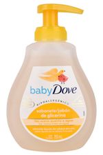 Jabón líquido Baby Dove con glicerina 200 ml, hipoalergénico y de uso diario para bebés. Suave desde la cabeza a los pies. Cómpralo en Ferniplast.com