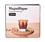 Taza de doble vidrio sin asas con capacidad de 280 ml, ideal para café, té o infusiones. Su diseño de doble pared ayuda a conservar la temperatura por más tiempo y reduce la transferencia de calor al exterior. Práctica y moderna, aporta un toque original a tu mesa.