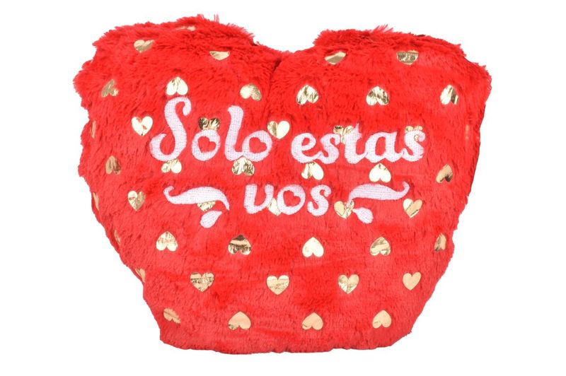 Peluche Phiphi Toys con forma de corazón reversible, ideal para regalar y decir lo que a veces cuesta expresar. Al darlo vuelta muestra dos frases bordadas, sumando sorpresa y un toque divertido. Su tamaño es justo para regalar, decorar o acompañar otros obsequios en fechas especiales.