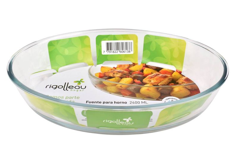Fuente oval Rigolleau de 2400 ml, ideal para preparar y servir comidas al horno. Fabricada en vidrio, permite una cocción pareja y una presentación directa en la mesa. Su formato oval es práctico para carnes, vegetales y preparaciones familiares.