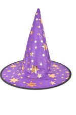 Añade magia a tu disfraz con este gorro de bruja o mago. Diseño cónico clásico con base amplia y detalles de estrellas. Perfecto para Halloween, fiestas temáticas o juegos de rol.