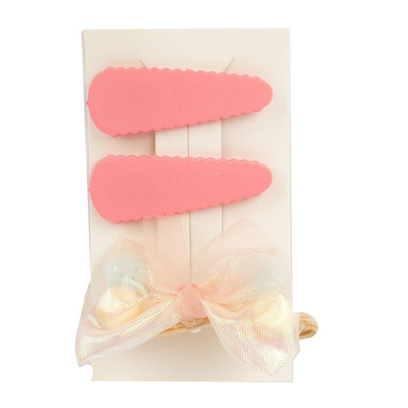Set de hebillas para el cabello con lazo, ideales para crear peinados dulces y originales. Diseño con lazo y materiales suaves para un uso cómodo. Perfectas para niñas.