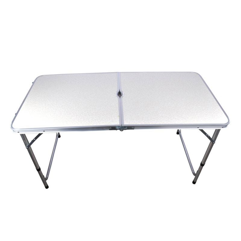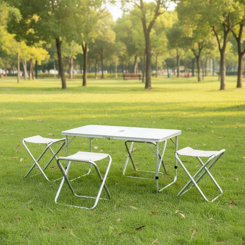Mesa plegable 120x62cm + 4 banquetas. Set compacto de aluminio, ideal para camping, picnic y jardín. ¡Cómpralo en Ferniplast.com!