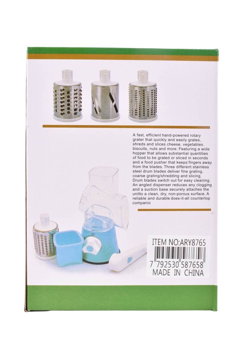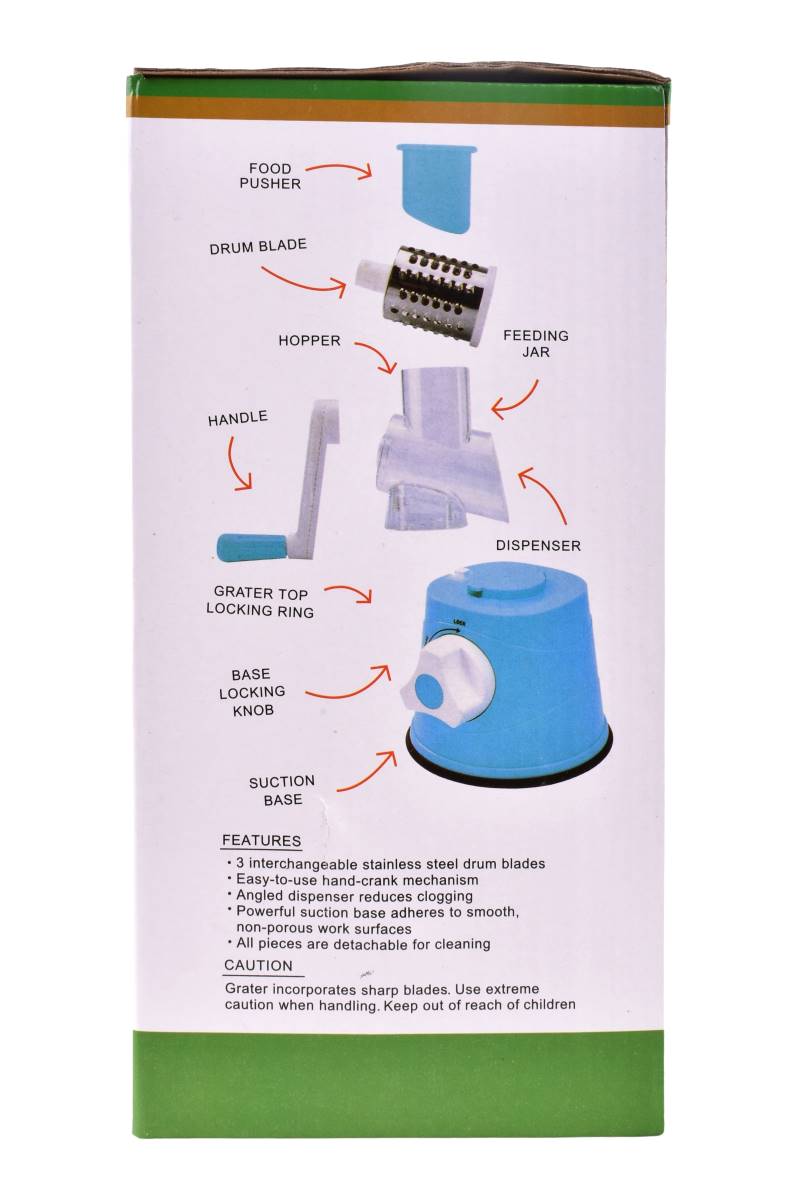 - Rallador manual con 3 cuchillas: ralladura fina, gruesa y en rebanadas.